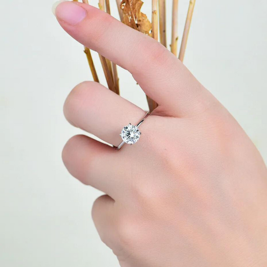 Round Solitaire Moissanite Engagement Ring - Sterling Silver By Robinhood Jewelry